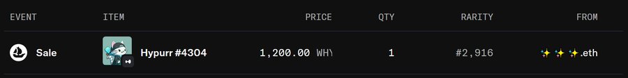 Hypurr NFT의 첫 공식 판매가 무려 1,200개($HYPE, $53,520)에 낙찰되었습니다! NFT입니다. twitter.com/0itsali0/status/19...