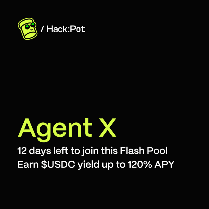 12일 남았습니다. 이 기회를 통해 $USDC의 수익을 창출하세요. 에이전트 X 플래시 풀은 첫 번째 모집 이후 이미 16%가 채워졌습니다. $HAI를 예치(stake) 하고 5일간 락업하여 풀 소진 전에 최대 120%의 연간 수익률 확보하세요. ⚠️플래시 풀은 증권 예측 시장에서 위험도가 높지만 수익률도 높은 상품입니다.