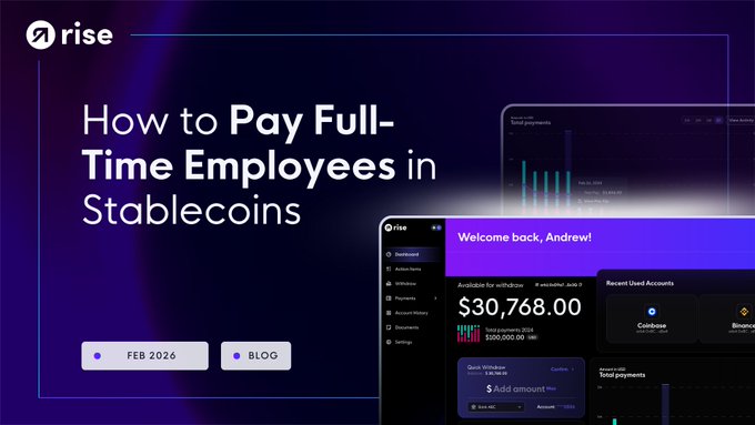 스테이블코인 급여 지급은 더 이상 계약직 직원만을 위한 것이 아닙니다. Rise를 사용하면 정규직 직원에게 USDC와 테더 USDT(USDT) 로 급여를 지급할 수 있습니다. 어떻게 하는지 보세요: riseworks.io/blog/how-to-pay-f...…