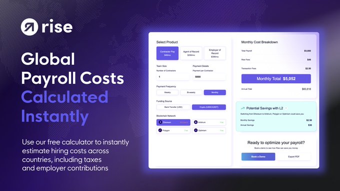 해외 팀에 급여를 지급하는 데 드는 비용이 궁금하신가요? 새로운 계산기를 사용하여 국경을 넘어 근무하는 계약직 및 정규직 직원의 비용을 현지 통화와 스테이블코인으로 계산해 보세요. 지금 바로 사용해 보세요: free-tools.riseworks.io/en/fre...…