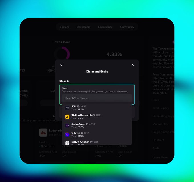 $TOWNS이 내일 출시됩니다. 자격을 갖춘 사용자는 클레임 프로세스 중에 자신이 좋아하는 마을에 예치(stake) 할 수 있습니다. 마을에 스테이킹하는 것은 새로운 기능과 미래 보상을 얻는 열쇠입니다.