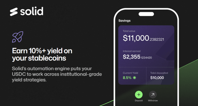 대부분의 사람들은 여전히 잔액에 대해 0%의 이자를 받지만, DeFi는 조용히 백그라운드에서 8~12%의 이자를 지급하고 있습니다. @SolidYield는 기본적으로 이러한 수익률을 일반적인 은행 거래 흐름에 통합하고 있습니다. - 스테이블코인에 대한 자동 수익, 가스 수수료 없음, 설정 불필요, 그리고 Visa 카드로 어디서든 사용 가능합니다.