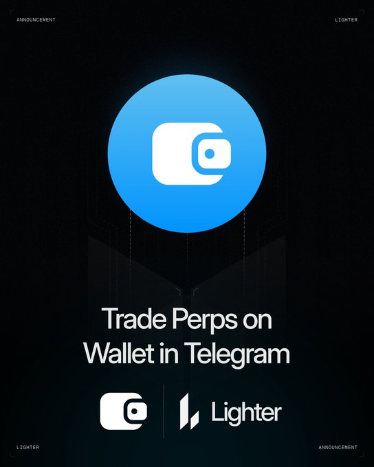 텔레그램의 Wallet과 파트너십을 맺고 Perps 앱에서 바로 이용 가능한 네이티브 거래 환경을 제공합니다. 개발자와 앱 개발자는 Perps와 Spot을 원활하게 통합할 수 있습니다. 파트너 어트리뷰션 프로그램은 개발 준비가 된 모든 분들에게 열려 있습니다! 🕯️ twitter.com/Lighter_xyz/status...