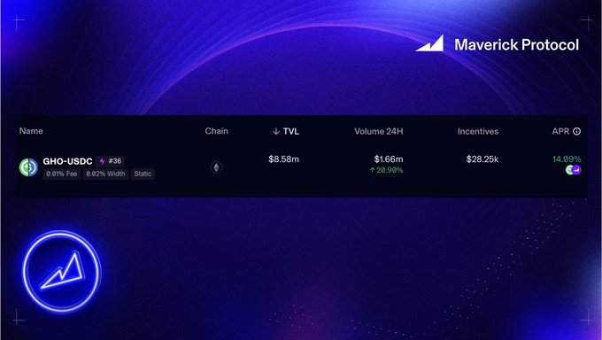 GHO 홀더들, 매버릭 프로토콜(MAV)과 GHO 보상이 이더리움(ETH) 메인넷의 매버릭 BP 36에서 갱신되었습니다. @GHO로 유동성을 공급하고 토큰 보상을 받으세요: app.mav.xyz/boosted-position/0...…