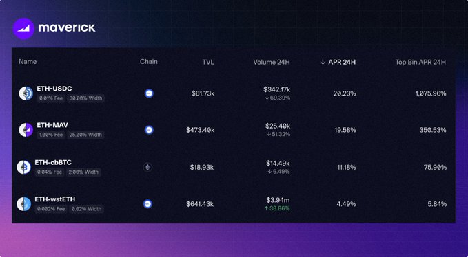 오늘은 @base에서 거래하기 좋은 날인가요? Base의 Maverick 풀에서 LP들이 엄청난 수수료 수익을 올리고 있습니다. 🔵자세한 내용은 여기를 확인하세요: app.mav.xyz/add-liquidity?chai...…