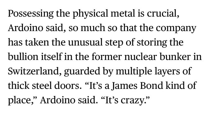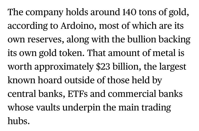 테더(Tether))는 금 시장에서 가장 큰 영향력을 가진 기업 중 하나가 되었습니다… "우리는 세상이 어둠으로 향하고 있다고 믿습니다. 우리는 세상에 많은 혼란이 있다고 믿습니다." 현재 이 오래된 핵 벙커에는 반짝이는 금속 140톤이 보관되어 있습니다. 매주 1~2톤 구매합니다. 진심이에요. @jackryanldn25를 통해
