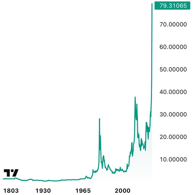 실버의 200년 차트는 경이롭습니다. 실버에게 일어나고 있는 일은 정상적인 상황이 아닙니다. 당신은 역사의 한 페이지를 목격하고 있습니다.