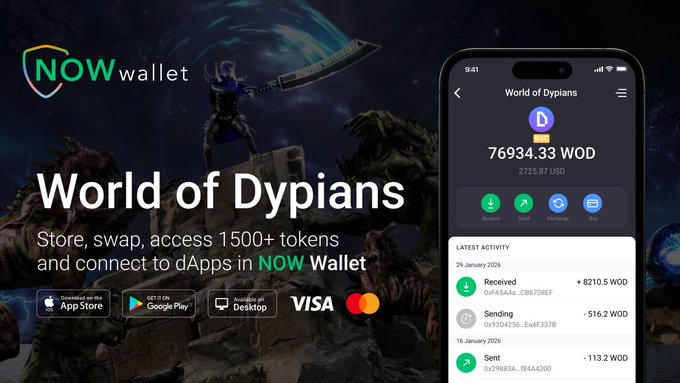 @worldofdypians에서의 모든 모험은 새로운 땅, 새로운 퀘스트, 그리고 중요한 선택으로 시작됩니다 ⚔️🌍 광활한 세계를 탐험하고, 전투를 벌이고, 거래하고, $WOD를 획득하며 살아있는 온체인 MMORPG에서 자신만의 길을 개척하세요. 여정을 떠날 준비가 되셨나요? NOW Wallet에서 $WOD를 받으세요: 🔗 http:/walletnow.app.link/Xdown...