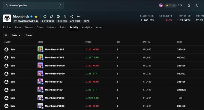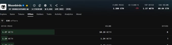 알고 보니 최저가보다 20% 낮은 가격에 거래되고 있네요. OpenSea에서는 안 보일 뿐이에요. 기본적으로 봇 하나가 시스템 전체를 악용해서 싸게 사들인 다음 바로 매도하는 거죠. 이게 완전히 무의미하다고 생각하는 사람은 저뿐인가요? 앞으로 며칠 동안 DEATHSTR을 계속 사야 할 이유를 모르겠네요. 하지만 Moonbirds는 출시 이후 최저가가 올라갔으니 어쩌면 좋은 걸지도 모르겠어요 😂… 원래는 반대로 될 줄 알았는데 말이죠.🤣 twitter.com/lokithebird/status...
