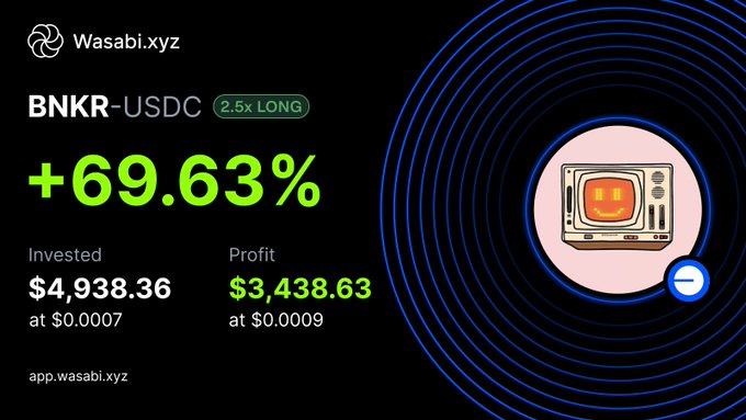 이번 주 거래 하이라이트: 2.5배 레버리지 $BNKR 현물 거래: +27.8% 와사비 2.5배 레버리지 적용 시: +69.6% 모든 항목 10배 레버리지.