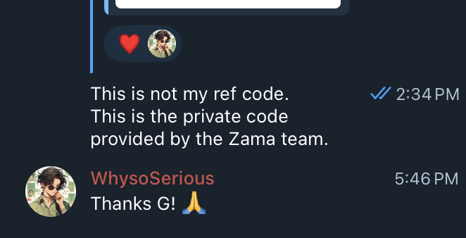 굳이 쓸 필요가 없다고 생각해서 사용하지 않고 Zama가 제공한 추천 코드를 제 커뮤니티에 공유했습니다.