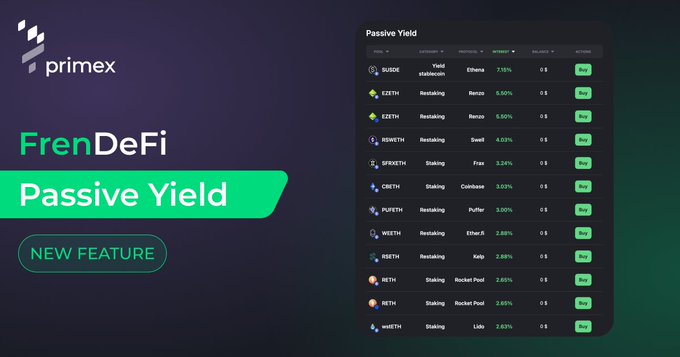 🤯 새로운 프렌디파이 기능: 수동적 수익 전략 이제 @LidoFinance, @Rocket_Pool, <Frax>프랙스(Frax)</Frax>, @RenzoProtocol, @ether_fi, @coinbase, @ethena_labs, @maker, @puffer_finance 등 선도적인 프로토콜의 수익 코인을 프렌디파이 앱에서 직접 구매할 수 있습니다! ✅ 찾아보기