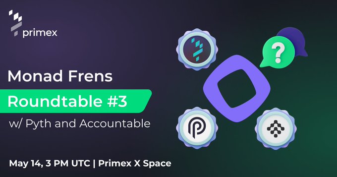 💜 GM(Good Morning)나드! 시간이 너무 빨리 흘러갑니다! 모나드 프렌즈 라운드테이블 #3가 벌써 내일입니다! 이번에는 @PythNetwork와 @AccountableData와 함께 무신뢰성 데이터란 무엇이며 웹3 및 디파이에서 왜 중요한지 논의하고 설명할 예정입니다. 🗓️ 5월 14일, 오후 3시 UTC 📍 프리멕스 X 스페이스