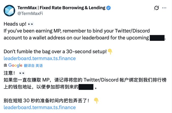 @TermMaxFi의 에어드롭에 참여하신 분들은 DC 계정을 연동하고 공식 트위터 계정에서 제공하는 에어드랍.