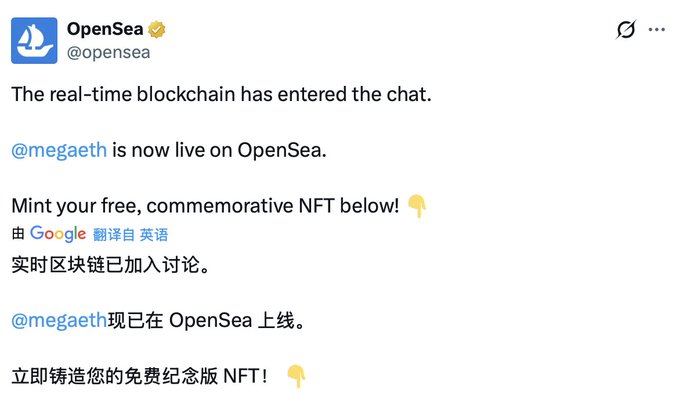 OpenSea에서 @megaeth를 기념하는 NFT를 출시했는데, 저는 벌써 39,000번이나 실행했어요. 목적은 잘 모르겠지만, 순전히 자기방어 차원에서 하는 겁니다. 어제 Megaeth가 메인넷에 출시됐는데, 세 가지 KPI 중 하나라도 달성하면 TGE(텐센트의 지리 데이터 처리 시간)를 얻을 수 있거든요.