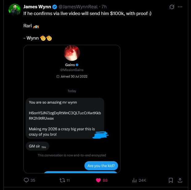 저에 대한 코인을 계속 만들어내는 당신들은 곧 아주 귀중한 교훈을 얻게 될 겁니다. 저는 당신들이 발행한 어떤 코인도 지지하거나 후원하지 않습니다. 모두 사기이니 절대 사지 마세요. 제가 제임스 윈에게 공유한 유일한 지갑 주소는 다음과 같습니다. H6onYSJN7JzgDqRtWnC3QLTucCrXwtKkbRK2h9tRUwax