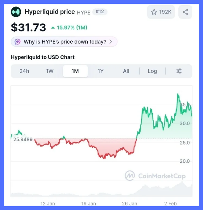 시장이 하락세입니다. 8억 달러가 현금화되었습니다. $hype 지난 30일 동안 15% 상승했습니다. 그 차이는 서사가 아닙니다. 기계식입니다. 변동성이 급증하면 활동이 하나의 표면으로 압축됩니다. ➤ 거래량 가속됩니다 ➤ 수수료 확대 ➤ 수익이 즉시 실현됩니다 @HyperliquidX는 블록체인 위에 자리 잡은 거래소가 아닙니다. 그것은 체인입니다. 실행, 유동성 및 결제가 하나의 루프로 통합됩니다. 스트레스 상황에서는 자본 선택권을 원하지 않습니다. 즉각적인 반응을 원한다. 범용 L1 서버는 위험 요소가 사라지면 처리량이 감소합니다. 응용 프로그램이 그것을 흡수하는 체인입니다. 가격 변동은 부차적인 문제입니다. 부하 상태에서의 동작이 바로 신호입니다. 만약 이것이 $btc가 저점을 재시험하는 동안 유지된다면, 시장은 "인프라"의 의미를 재정립하고 있다.