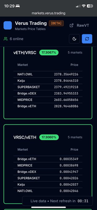 커뮤니티에서 만든 이 도구로 모든 차익거래 기회를 추적하세요 👀 twitter.com/VerusCoin/status/1...