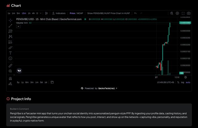 성공적인 출시인 것 같습니다. + $pengvibe 코드로 결제 할인 + 펭귄 메타에 대한 관심 증가 + 원활한 미니앱 사용 경험 twitter.com/MintClubPro/status...