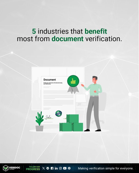 블록체인 문서 검증은 의료, 교육, 물류, 제조 및 부동산과 같은 산업에 이점을 제공합니다. 귀하의 산업이 어떻게 혜택을 받을 수 있는지 알아보세요: http:/veridocglobal.com .