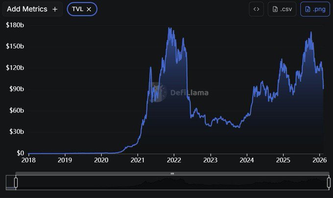 크립토의 총 TVL은 10월 10일 청산 사태 이후 730억 달러 감소했습니다.