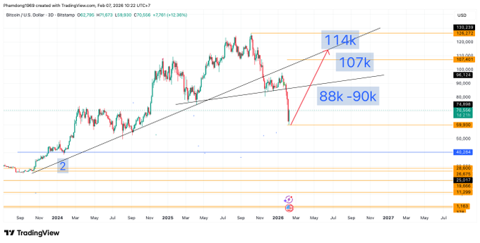 비트코인 가격의 주요 저항선: 1. 88,000~90,000달러 범위 2. 107,000달러 범위 3. 114,000~115,000달러 범위 어떤 범위까지 도달할 수 있을 거라고 생각하시나요? #비트코인 #BTC twitter.com/phamduydong179/sta...