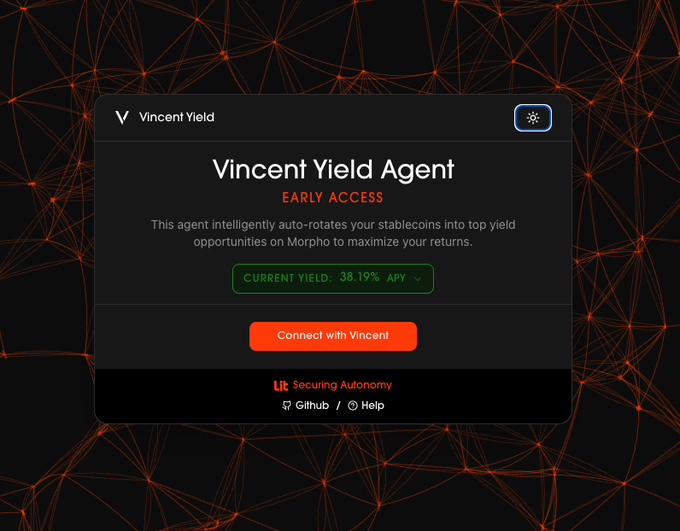 📢 @LitProtocol의 @HeyVincentAI가 얼리 액세스로 출시되었습니다! Vincent는 누구나 에이전트를 활용하여 @MorphoLabs에서 스테이블을 수익 창출 포지션으로 자동 회전할 수 있는 차세대 자율 금융 플랫폼입니다. 지금 바로 사용해 보세요 ↓ twitter.com/SpaceshipDAO/statu...