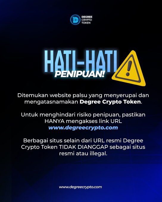 주의! 사기 조심하세요! 위조된 웹사이트가 디그리 크립토 토큰을 모방하여 사칭하고 있습니다. 사기 위험을 피하기 위해 http:/degreecrypto.com 링크 URL만 확실히 접속하세요.