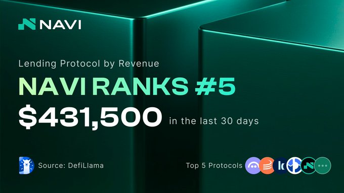 상위 5위 NAVI는 30일 수익 기준으로 모든 대출 프로토콜 중 5위를 차지했습니다. 지난 30일 동안 431,500달러의 수익을 창출했습니다. 지속적인 수요와 실제 사용량은 NAVI를 온체인 대출의 핵심 유동성 레이어로 자리매김하게 하고 있습니다.
