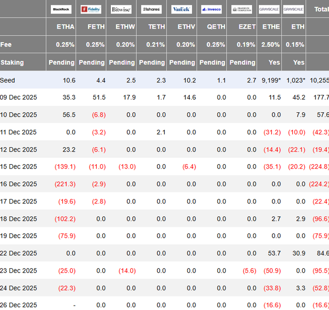 $ETH 이번 주 ETF에서 1억 240만 달러의 자금 유출이 발생했습니다. 블랙록은 6,942만 달러 상당의 이더리움을 매도했습니다.