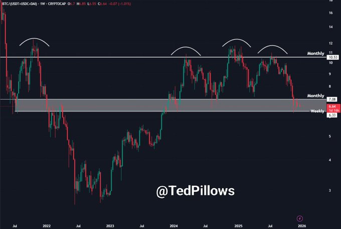 비트코인(BTC)/stables가 강력한 월간 지지선에 도달했습니다. 스테이블코인 공급량이 계속 증가하고 있다는 것은 유동성이 시장에서 빠져나가지 않고 있다는 것을 의미합니다. 제 생각에는 2026년 1분기에 비트코인 가격이 10만 달러 부근까지 상승할 수 있을 것 같습니다.