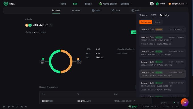 GM(Good Morning) NEAR 체인 추상화가 필요하지 않다고 생각하는 사람들에게, 방금 내 비트코인(BTC)을 nBTC(니어 네이티브 버전)로 온-램프했고, aBTC로 스왑했으며, 유동성 공급자(LP)로 제공했습니다. 단일 비트코인 지갑만으로, 사용자는 NEAR 지갑을 만들거나 2개의 시드 구문을 관리할 필요가 없습니다😉 모든 것은 더 나은 것에 관한 것입니다