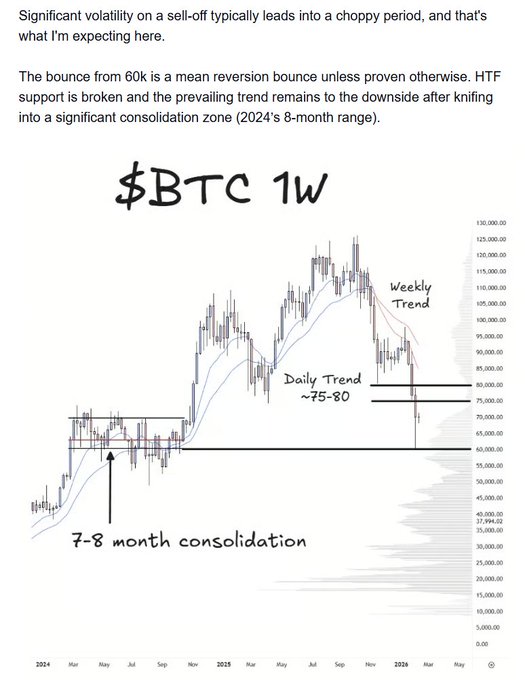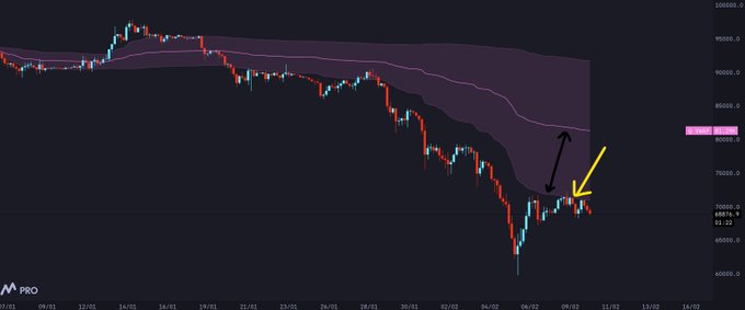 $BTC 분기별 개발 중이며, 이는 실제로 약 40일치의 가치에 해당합니다. 간단한 경험적 판단으로, 현재 장기 차트에서 1 표준편차 밴드 경계를 벗어나면 거부 반응이 나타납니다. 상승 방향으로 더 넓은 범위를 기대하거나 상한선이 더 높을 것으로 예상될 경우, 밴드 안쪽에서 다시 수용해야 합니다. 즉, ~72 이상에서 건설적인 가격 움직임이 나타나야 합니다.