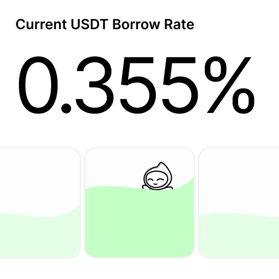 비트코인(BTC) 스테이블 코인으로 팔 때마다 가격이 더 오르지 않을 거라고 예상하는 것과 마찬가지입니다. 지금 당장 0.355%의 이율로 대출받을 수 있습니다. 보유 비트코인(BTC) 코인(BTC)은 그대로 유지하고, 테더 USDT(USDT) 받으세요. 어디든 투자하세요.