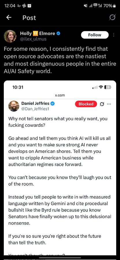 저는 제 글의 어떤 부분이 AI 전문가들을 "불성실하다"고 판단하게 만들었는지 궁금합니다. 한번 보겠습니다. 제가 이들이 AI가 우리 모두를 죽일 것이라고 믿으며, 그들의 목표가 어떤 수단으로든 AI를 늦추거나 방해하거나 중단시키는 것이라고 쓴 부분인가요? 제미니(Gemini) 딥