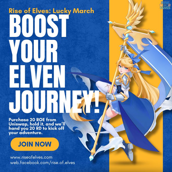 엘프의 여정을 더욱 풍성하게 만들어보세요! ⚡️ 신규 플레이어 여러분, 주목하세요! ROE 구매 보너스로 유리한 출발을 하세요. 유니스왑(Uniswap) 에서 ROE 20개를 구매하고 보유하시면, 모험을 시작하는 데 도움이 될 RD 20개를 드립니다. 📩 지금 등록하세요: 페이스북으로 메시지를 보내주세요: web.facebook.com/rise.of.elves #라이즈오브엘프 #럭키