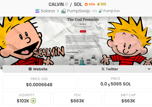 $SPARK이 100배 오르기 전에 놓쳤어 $CALVIN이 100만 달러 미만일 때는 절대 놓칠 수 없어 이건 암호화폐를 설명하는 데 사용된 최초의 암호화폐 마스코트야. 현재 시가총액이 잠재력을 제대로 반영하지 못한다고 생각해. 커뮤니티가 더 잘 알 거야. 100만 달러 -> 1,000만 달러 ⌛️ 더 높이 올려보자 얘들아, 계속 오를 거야