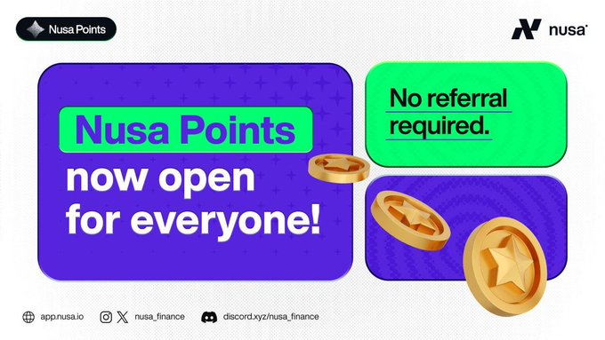 NUSA 포인트는 Nusa Finance 생태계 내에서 실제 온체인 활동에 대한 보상입니다.