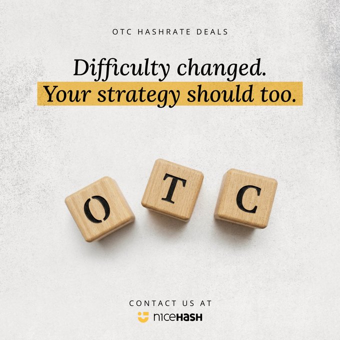 난이도 조정 완료. 이제 어떻게 해야 할까요? - 이 상황이 지속되기를 바라세요 - 유리한 위치를 확보하세요. OTC 해시레이트 거래를 통해 고정된 기간과 예측 가능한 수익을 확보할 수 있습니다. 문의하기 📩 otc@nicehash.com