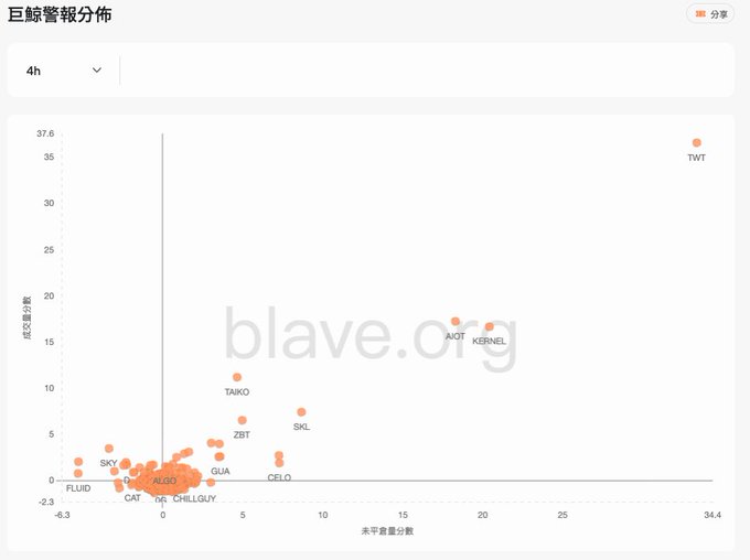 $TWT 무슨 일이야?! 🥸 TWT 외에도 지난 4시간 동안 비정상적인 고래 활동을 보인 토큰에는 $AIOT $KERNEL $SKL... 등이 있습니다. 메인스트림/알트코인 지수가 최저 수준으로 되돌아갔고, 알트코인들이 다시 한번 가격을 끌어올리며 시장에 혼란을 야기하는 가운데 메인스트림 코인들은 등락을 반복하고 있습니다. 리스크 각별히 인지하세요! 🚨