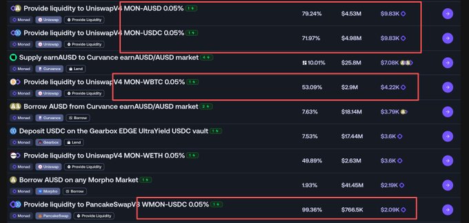 모나드의 TVL 데이터는 꾸준히 증가하며 점차 개선되고 있습니다. 모나드의 인센티브를 살펴보면, 대부분 모나드의 유동성과 관련되어 있습니다. 모나드를 대량 보유한 투자자라면 유한책임투자자(LP)로 참여하여 인센티브와 LP 수수료를 얻는 것이 최적의 선택입니다!