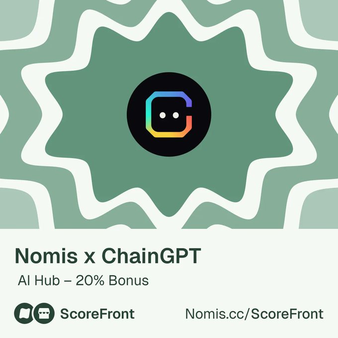 @0xScoreFront가 승승장구하고 있습니다! AI Hub V2 @Chain_GPT Evolved 출시! 스코어 보유자에게 20% 보너스 크레딧 지급 👇 • 스코어 지갑으로 ChainGPT AI Hub에 로그인하세요. • 보너스 신청을 완료하세요. • 자격 요건을 충족하는 지갑에는 매월 크레딧 포인트가 지급됩니다. 🔹AI Hub 살펴보기: nomis.cc/score-front?id=201…