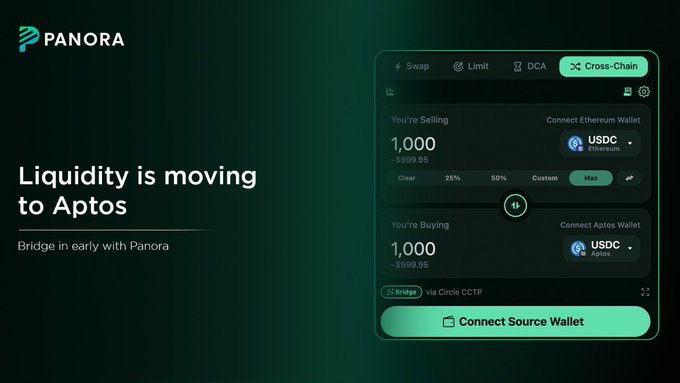 유동성이 앱토스(Aptos) 쪽으로 이동하기 시작했습니다. @DecibelTrade의 출시가 임박했으며, 현재 초기 포지셔닝 작업이 진행 중입니다. Panora를 사용하면 마찰 없이 연결하고 교체할 수 있습니다. - 모든 체인에서 앱토스(Aptos) 로의 브리지 → app.panora.exchange/cross-chai... - 앱토스(Aptos) 에서 최적의 금리로 스왑하세요→ app.panora.exchange/swap 지금 당장 그곳으로 가세요!!