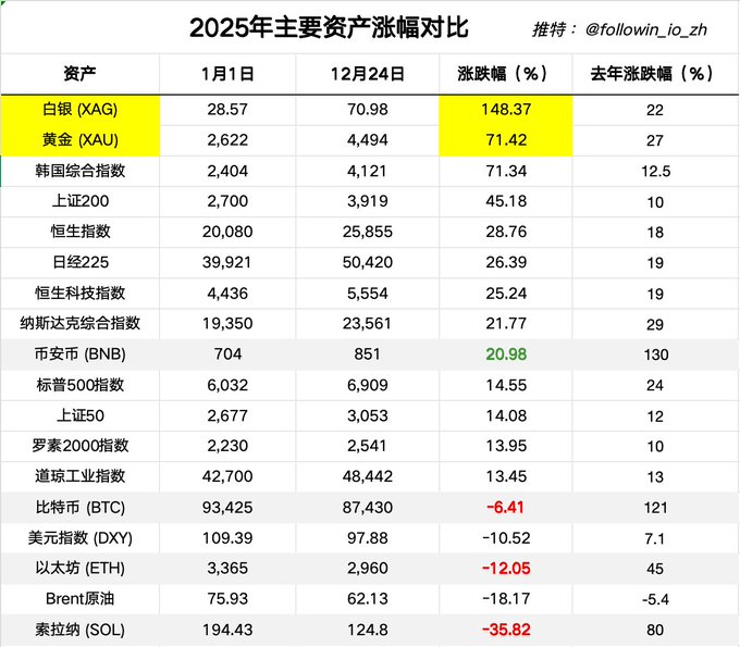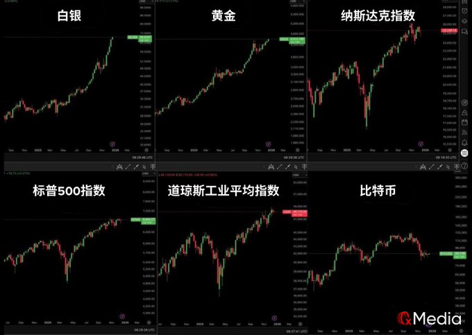 1⃣ 비트코인(BTC), 이더리움(ETH), 솔로몬(SOL)이 하락세를 보이고 있으며, 미국 암호화폐 관련 주식도 하락하고 있습니다. 하지만 미국 주식과 금, 은은 현재 사상 최고치를 경신하고 있습니다. 암호화폐는 외면받고 있습니다.