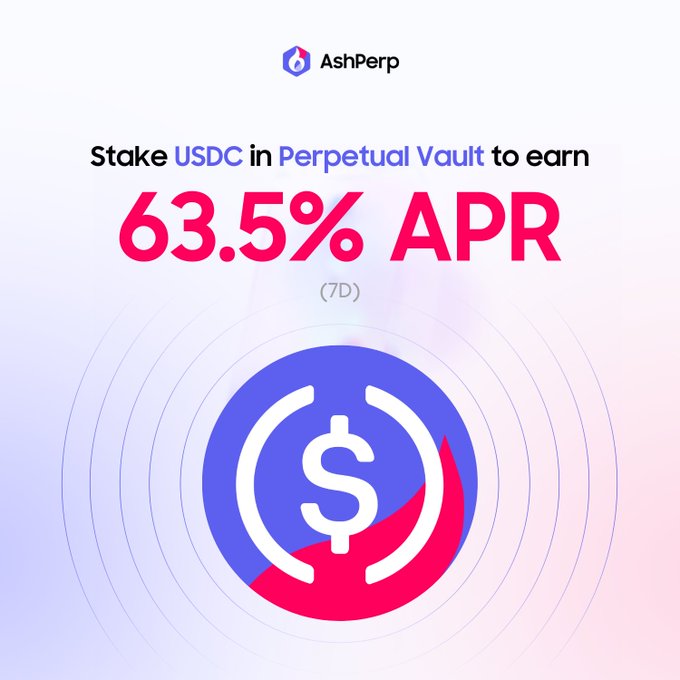 ⚡ 속보: AshPerp 금고의 7일 연간 수익률(APR)이 63.5%로 급등 $USDC를 예치(stake)하고 $apUSDC를 성장시키세요, 동료 여러분! 👉 ashperp.trade/vault