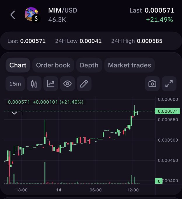 $MIM 매직 인터넷 머니(@mimcoinbtc)가 오늘 크라켄(Kraken) (@krakenfx @krakenpro @KrakenDesktop)에서 거래량 증가와 상승세를 보이고 있습니다. twitter.com/Dave_LFG/status/20...