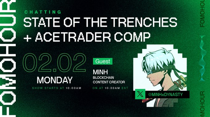 포모(FOMO) 시간. 2월 2일 월요일 오전 10시 (미국 동부시간). @MINHxDYNASTY와 @AceTrader가 함께하는 현장 상황 분석 대회! 절대 놓치지 마세요.