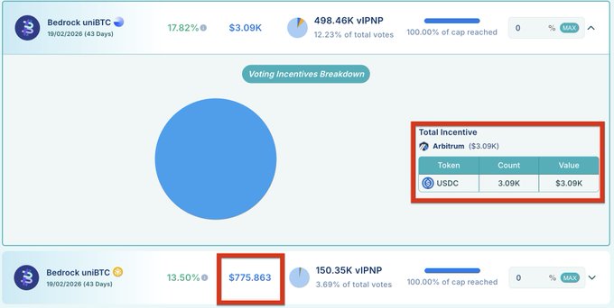 @Penpiexyz_io 투표 마켓에서 $USDC 리워드로 에너지를 충전하세요!⛽️ @Bedrock_DeFi는 투표 인센티브로 3,865달러를 투입했습니다. 👉 uniBTC(BASE): $3,090 / 연이율 17% 👉 유니BTC(바이낸스 코인(BNB)): 775달러 / 연이율 13% 이번 시대의 #vlPNP 유권자들을 위해.🔥 투표에 참여하고 보상을 받으세요!🗳️