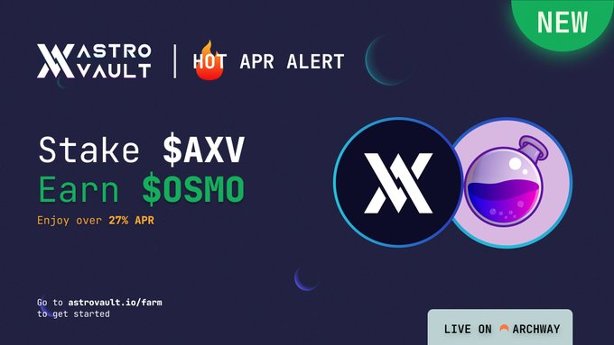 Astrovault의 $AXV-$ 오스모시스(OSMO) 팜으로 27% 이상의 APR을 제공하여 뛰어난 수익 잠재력을 확보하세요. http:/astrovault.io/farm을 방문하여 DeFi 전략을 강화하세요.