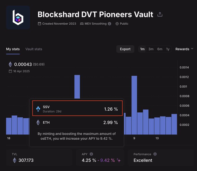 우리는 @stakewise_io에서 프로토콜 고유 토큰 보상으로 블록샤드 DVT 파이오니어 볼트에 대한 인센티브를 시작했습니다 🪙 🔹 첫 번째: 에스에스브이(SSV)의 인센티브 @ssv_network 메인넷 — 현재 +1.26% 추가 중 🔸 곧 출시: @Obol_Collective, $OBOL 인센티브가 시작되면 With the